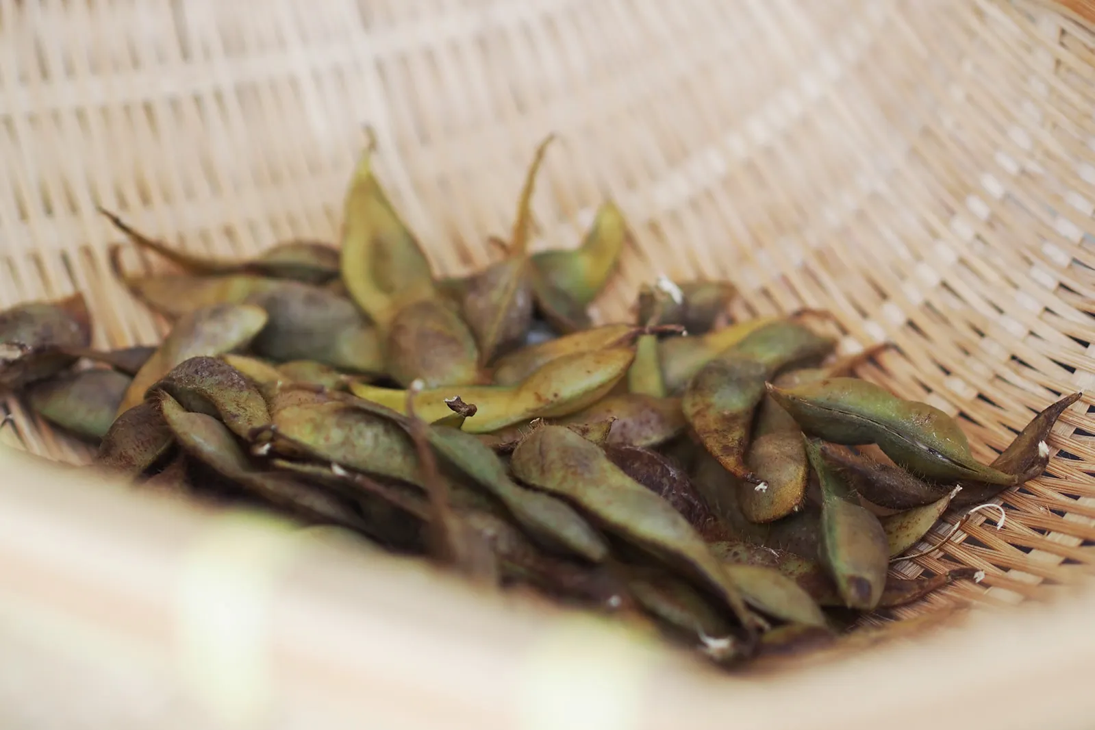 この日はお邪魔するや否や、「今、黒豆茹でてるしな、食べてもらおと思てな。もうちょっと待ってや」、そうおっしゃって湯気のたちのぼるぷりぷりの丹波黒の枝豆をザルごと、目の前にどんと置いてくださいました。ここは丹波。栗も小豆も黒豆もとびきりの地。茹でてくださった黒豆の枝豆はうっすらと紫色で、口の中で濃厚な旨味が広がります。
