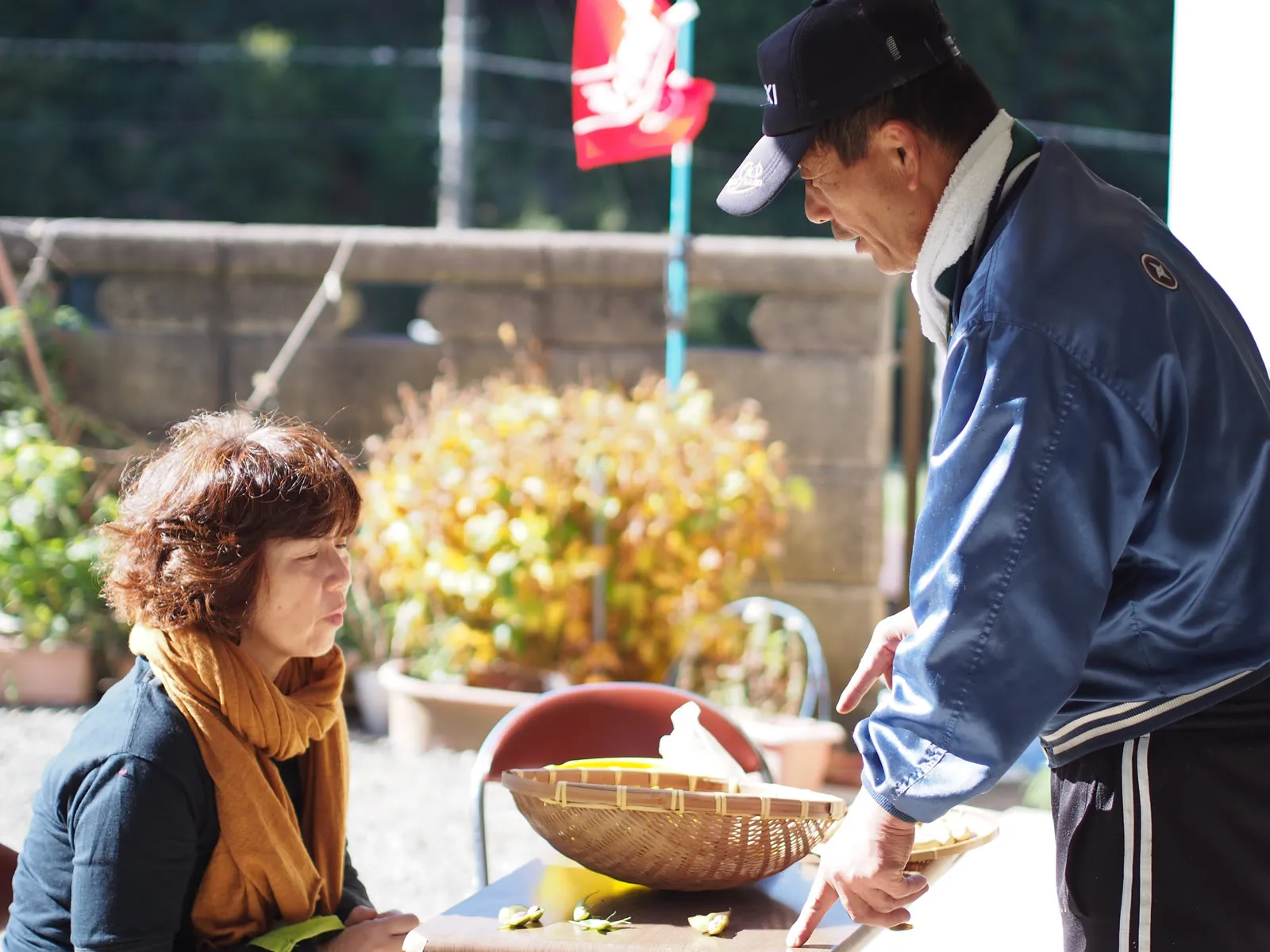 堀江光治さんは京都北部、園部のるり渓で農業をされています。温泉街を過ぎ、川の流れに沿って進むと、パッと田畑が広がります。光治さんのお宅はその一番奥の高台にあり、お宅の裏には清流が流れています。オオサンショウウオも生息しているという美しい水の恵みを受け、この地でお米、小豆、大豆、そして季節の野菜を、代々作ってこられました。