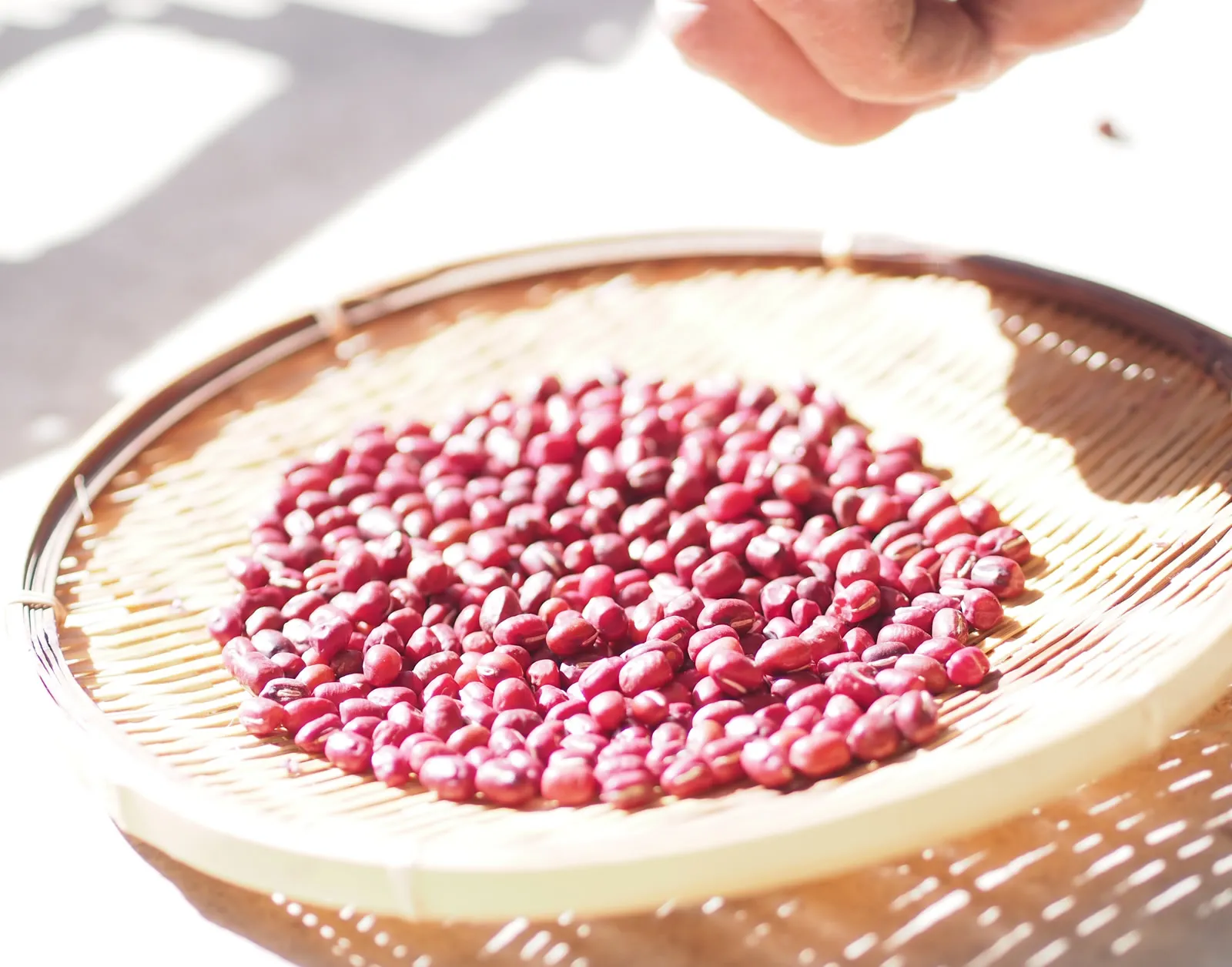 この日、ご一緒した和菓子作家の一祥さんは「光治さんの小豆はピカイチにおいしい」とおっしゃいます。丹波という気候風土、そして「この土地は水が枯れたことない。綺麗な水をたっぷり使えるやろ。お天気と土と綺麗な水、ほんで毎日様子を見てやること、それでええねん。台風来て全部あかんようになったら、『堪忍やったで』言うて声かけてな、種だけ取るねん。あかんかったらまた来年や」、そんな風に育てられた小豆たちがピカイチの味になります。