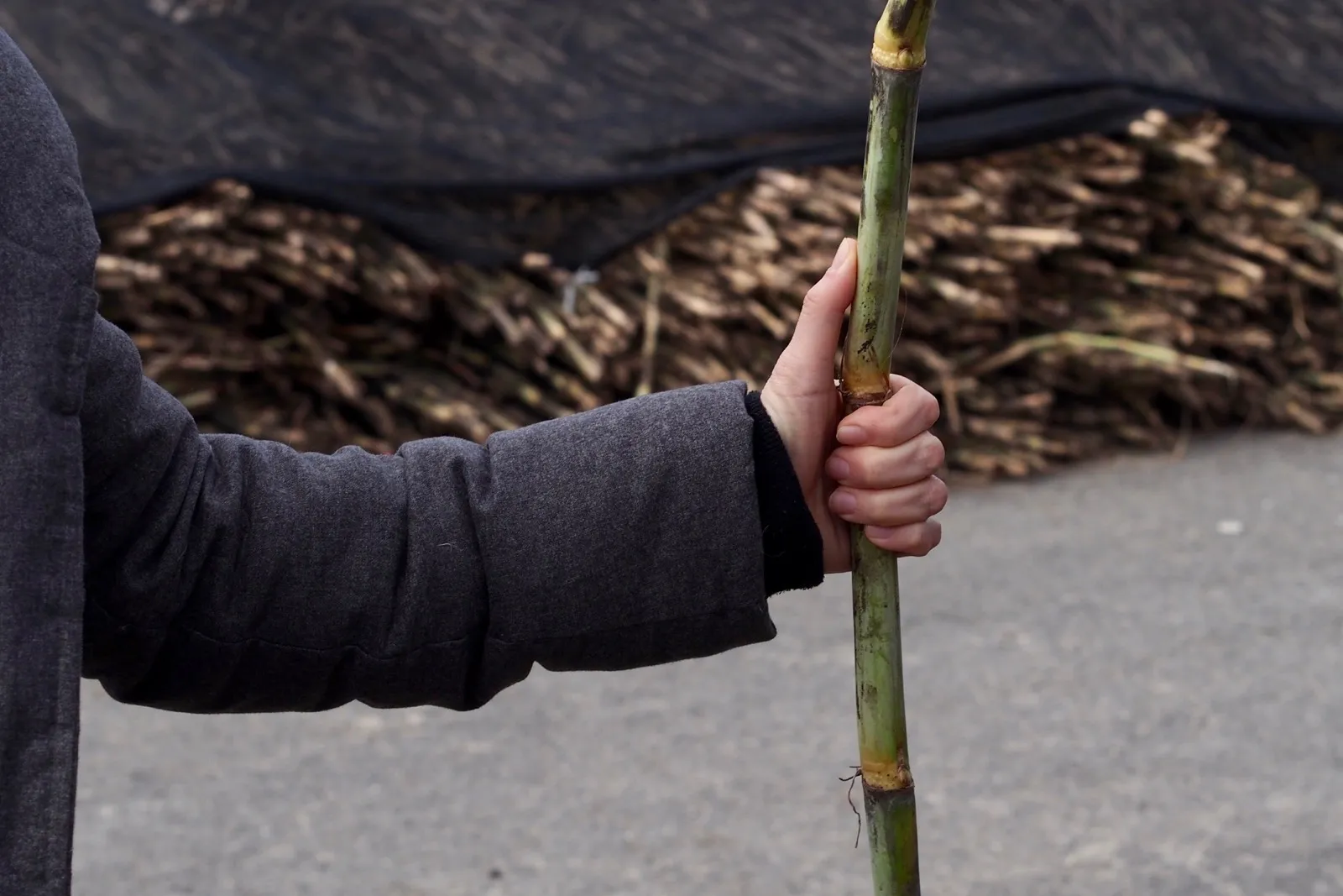 「これが竹糖(ちくとう)といいまして、和三盆用の品種です。ふつうのサトウキビよりずいぶん細いでしょう」