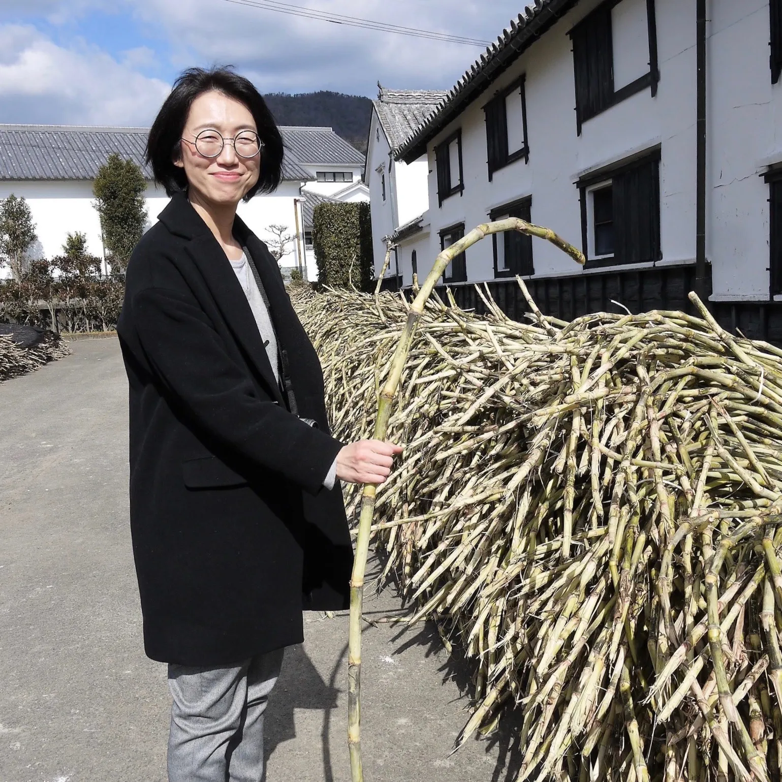和三盆作りは、いわば冬の風物詩。原料になるサトウキビが成熟して糖度を上げる時期を見計らって収穫するためです。ちょうど12月から2月が最盛期で、私たちが訪れた2月上旬はまさにサトウキビを絞って糖蜜を作る作業の真っ只中でした。製糖所の周りの広い敷地には、近隣の畑から引き抜かれたばかりのサトウキビが山積みされていました。