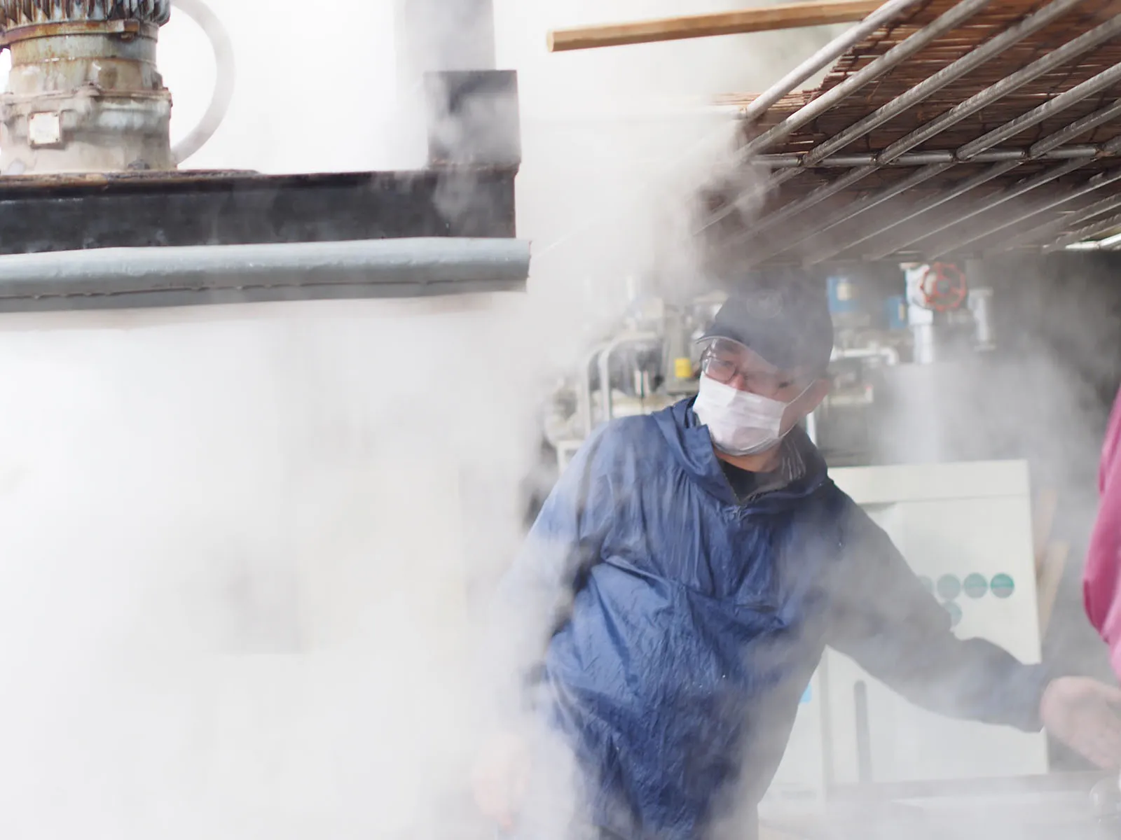 熱い湯気が充満する釜場での苦労を岡田さんに尋ねると、「じつは、和三盆作りの難しさは冷ます方にあります」と意外な答えが返ってきました。